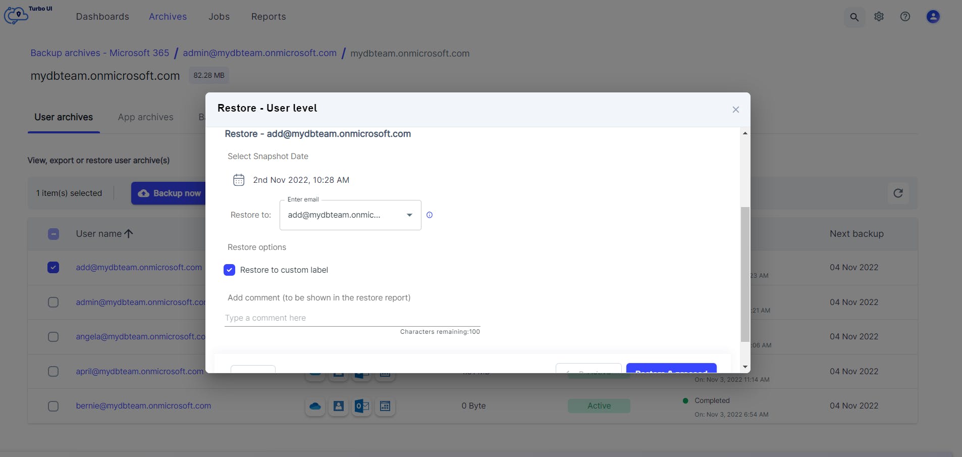 リストア元とリストア先、リストア/エクスポートされたアイテムの数、タイプ、ユーザー、日付などの情報も同時に確認できます。