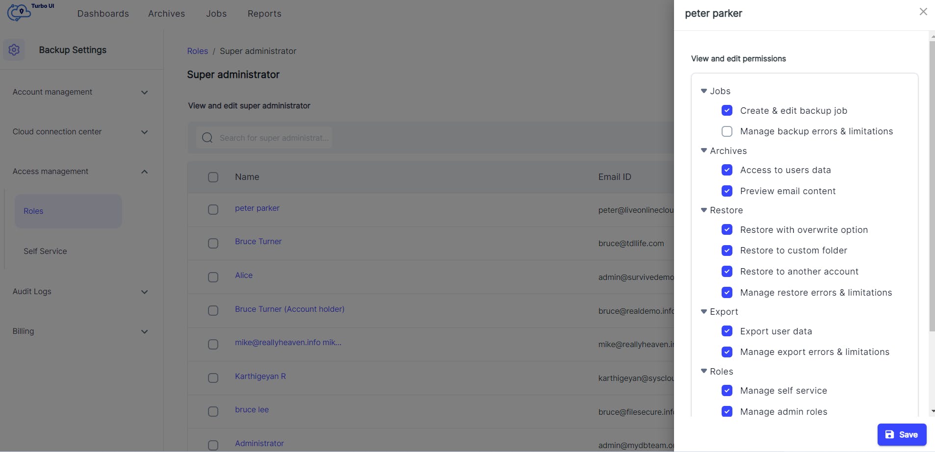 SaaS管理者が簡単にバックアップデータを管理できるように設計された高度な機能群をご覧ください。