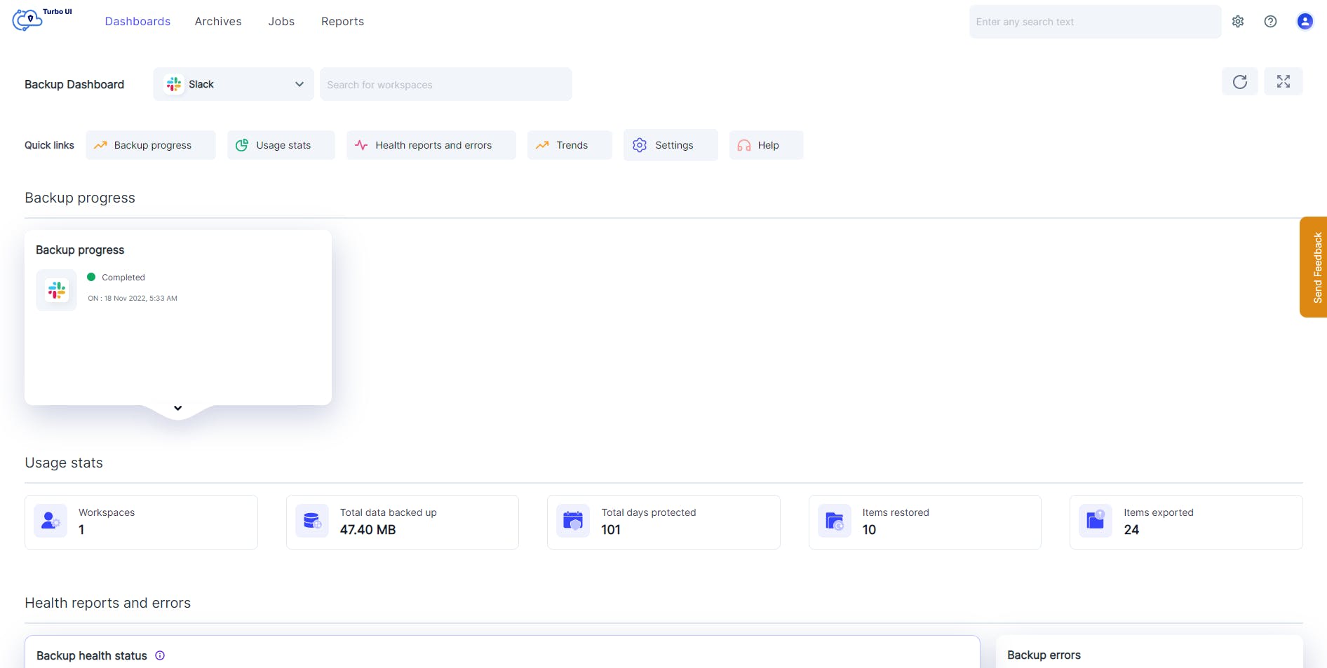 データ移行、サードパーティアプリの統合、データの削除など、Slackワークスペースに大きな変更を加える前にオンデマンドバックアップを実行することで、
